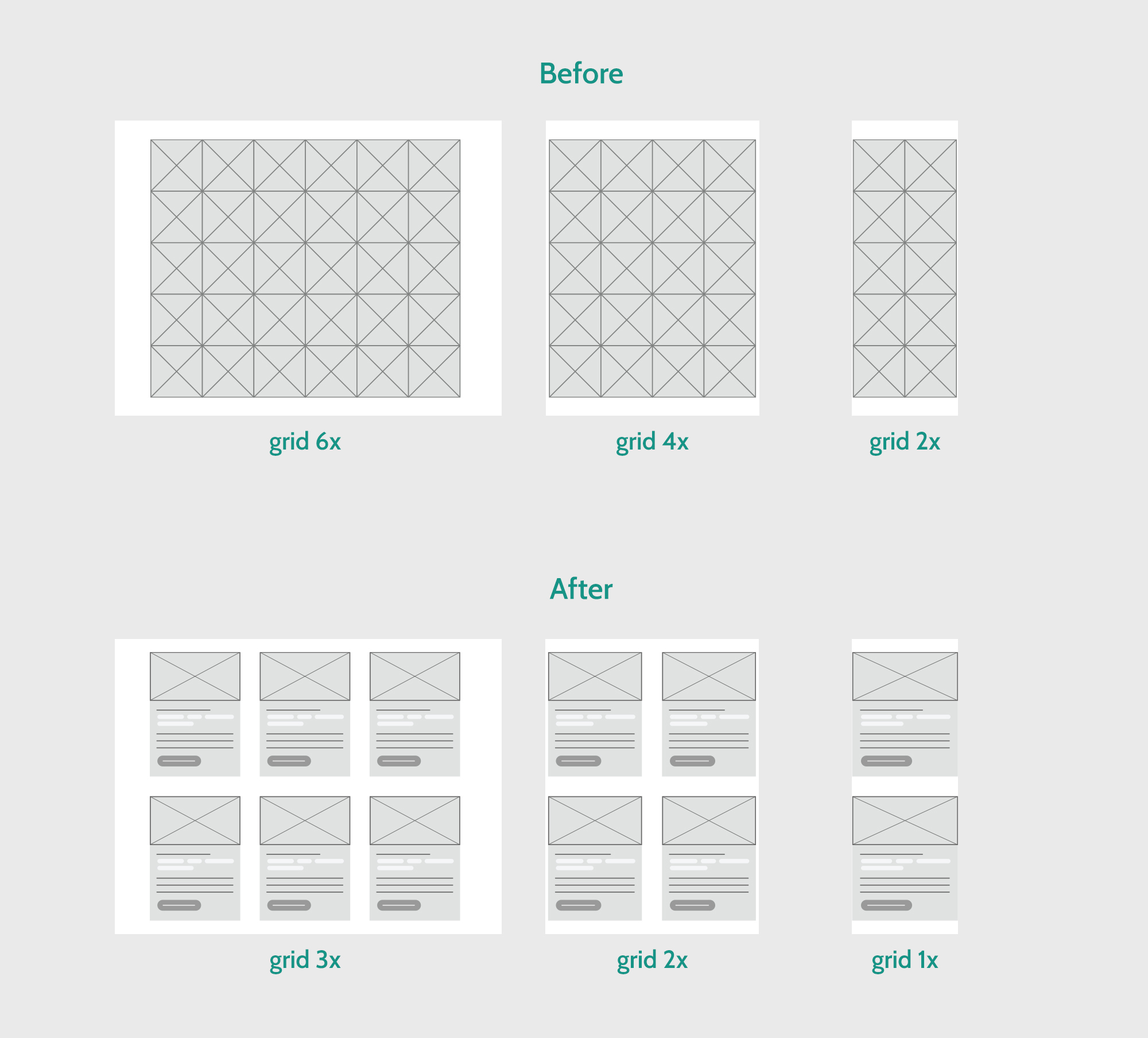 Only after this contextual introduction does the new grid system appear. The previous layout was dense and inconsistent, making it difficult for users to scan or understand the hierarchy of content. The redesigned grid is modular and responsive — 3×3 on desktop, 2×2 on tablet, and 1×1 on mobile — bringing clarity, rhythm, and accessibility to the experience.